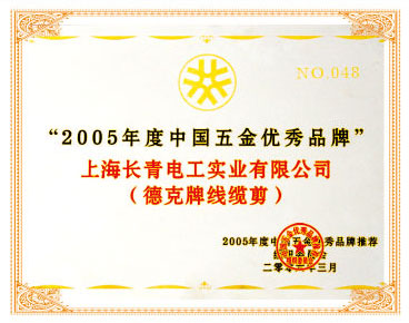 资质名称: 2005年度中国五金优秀品牌 |