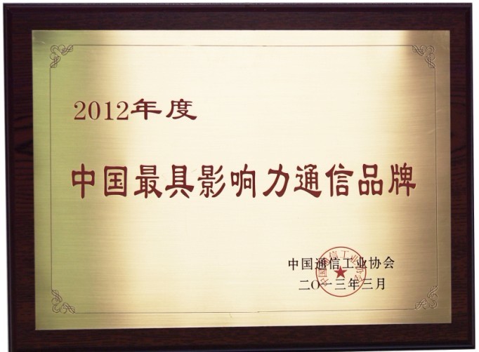 资质名称: 2012年度中国最具影响力通信品牌 |