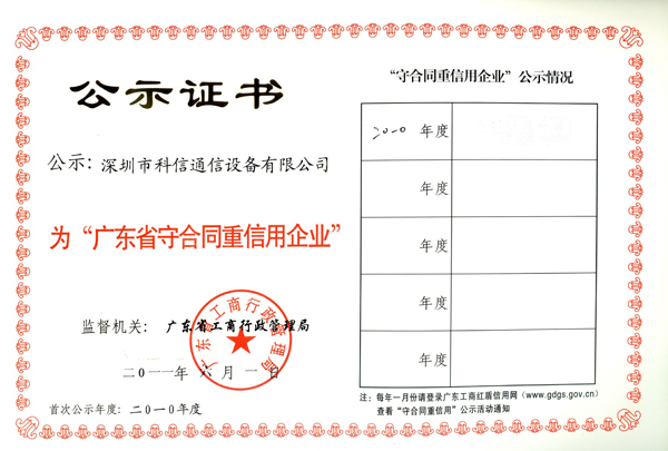 | 持证单位: 深圳市科信通信技术股份有限公司 |