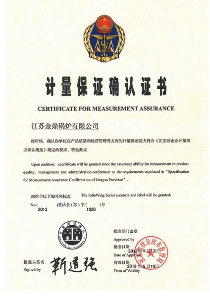 产品名称: 计量保证确认证书 |